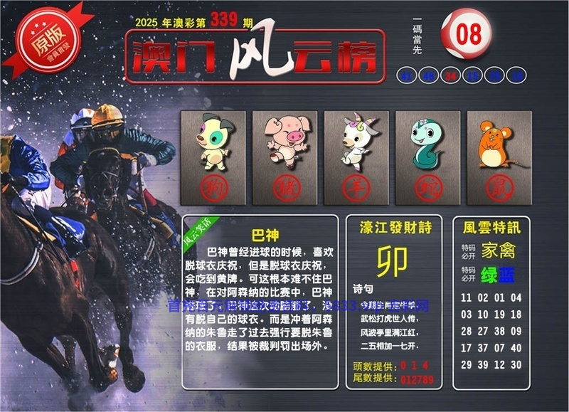 | 339期:六肖中特〖牛鸡狗龙羊虎〗开:马48错 |